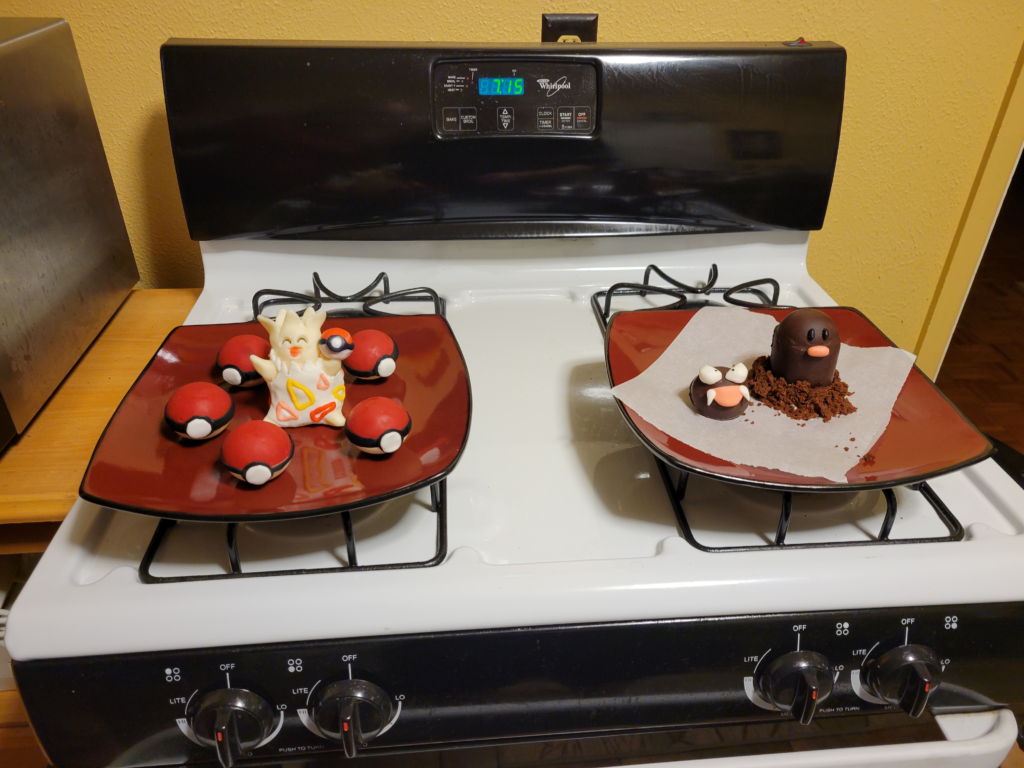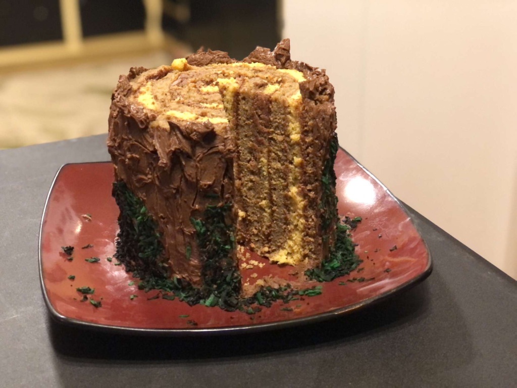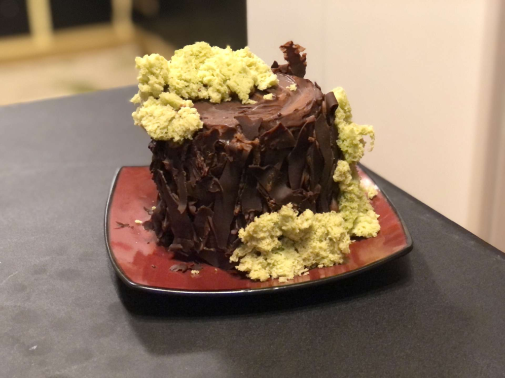 First off… who even comes up with the prompt like stump? Somehow, we both ended up making cakes that looked kind of similar but were made in completely different ways. I did layers, he did a Swiss roll standing upright. Same word, totally different interpretations. We even made edible “moss” for the first time. Lucky for us, they tasted pretty good!